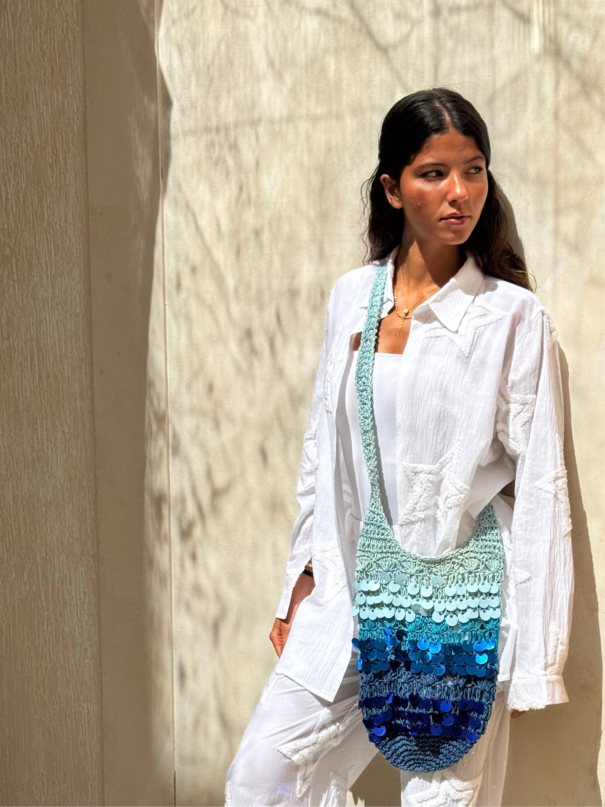 Swing into style with our handcrafted Crochet Crossbody Bag! This adorable accessory features playful sparkly sequins (those glittery circles you love!) scattered throughout the design. Perfect for adding a touch of whimsy to any outfit while keeping your essentials close. Small but mighty, this bag brings both function and fun to your everyday adventures!