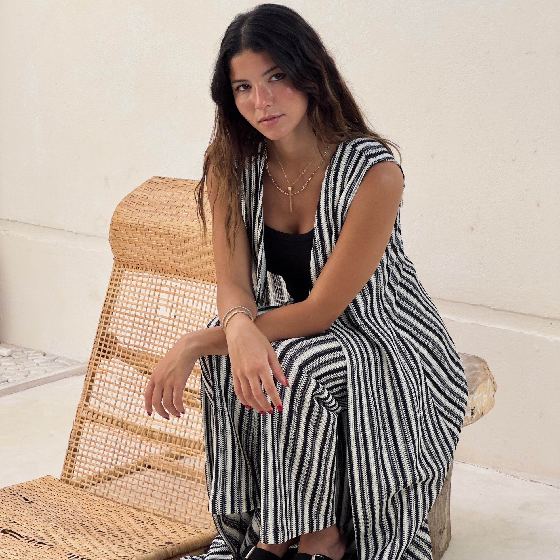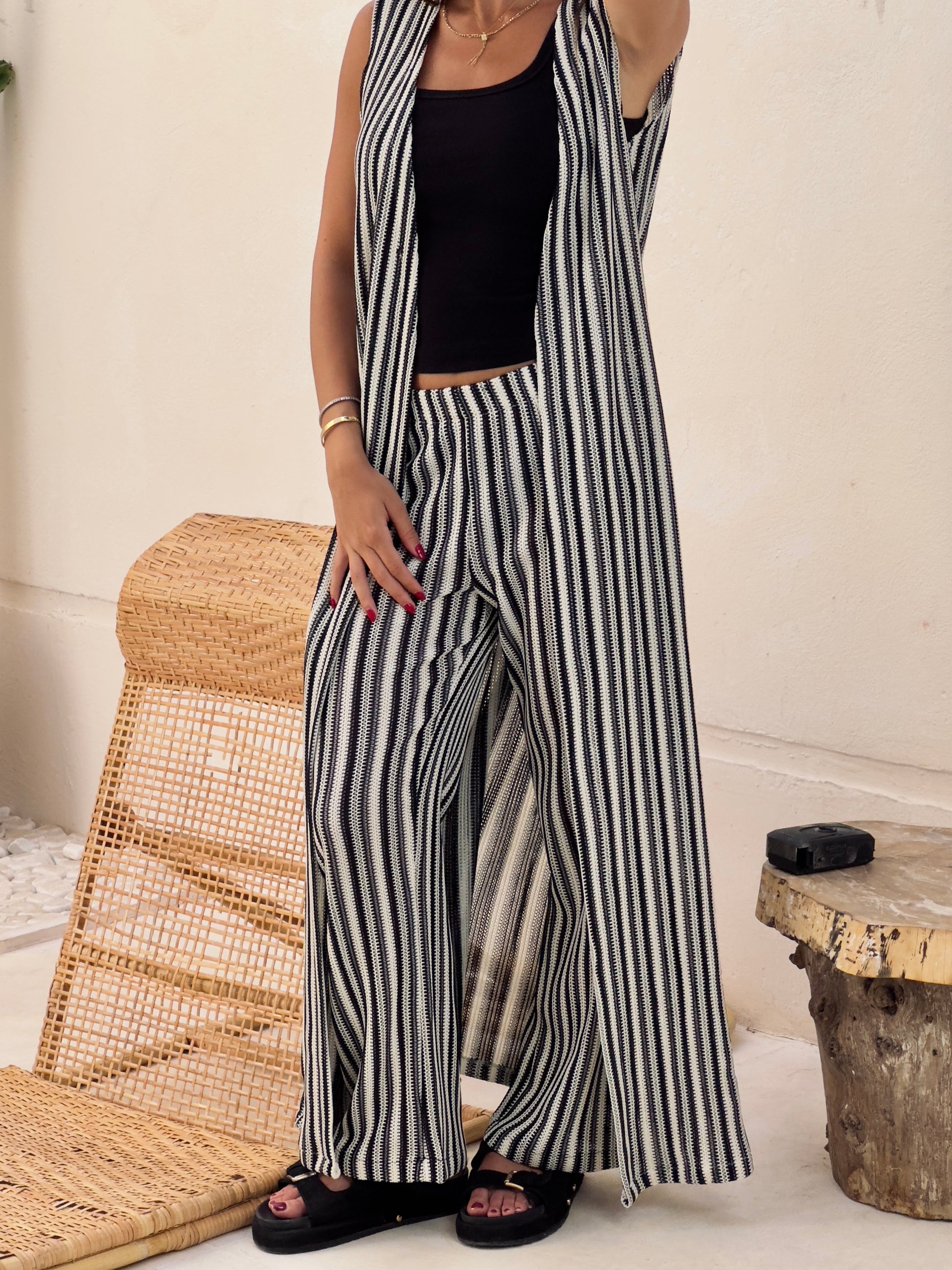 Wrap yourself in cozy charm with the Grey Matter Set! This playful duo features a long cardigan and matching knit pants in a stylish grey and black blend, perfect for beach days or relaxed outings. Soft, breathable knit keeps you comfy while adding a chic touch to your casual look. Whether strolling by the shore or lounging with friends, this set brings effortless style and comfort together.