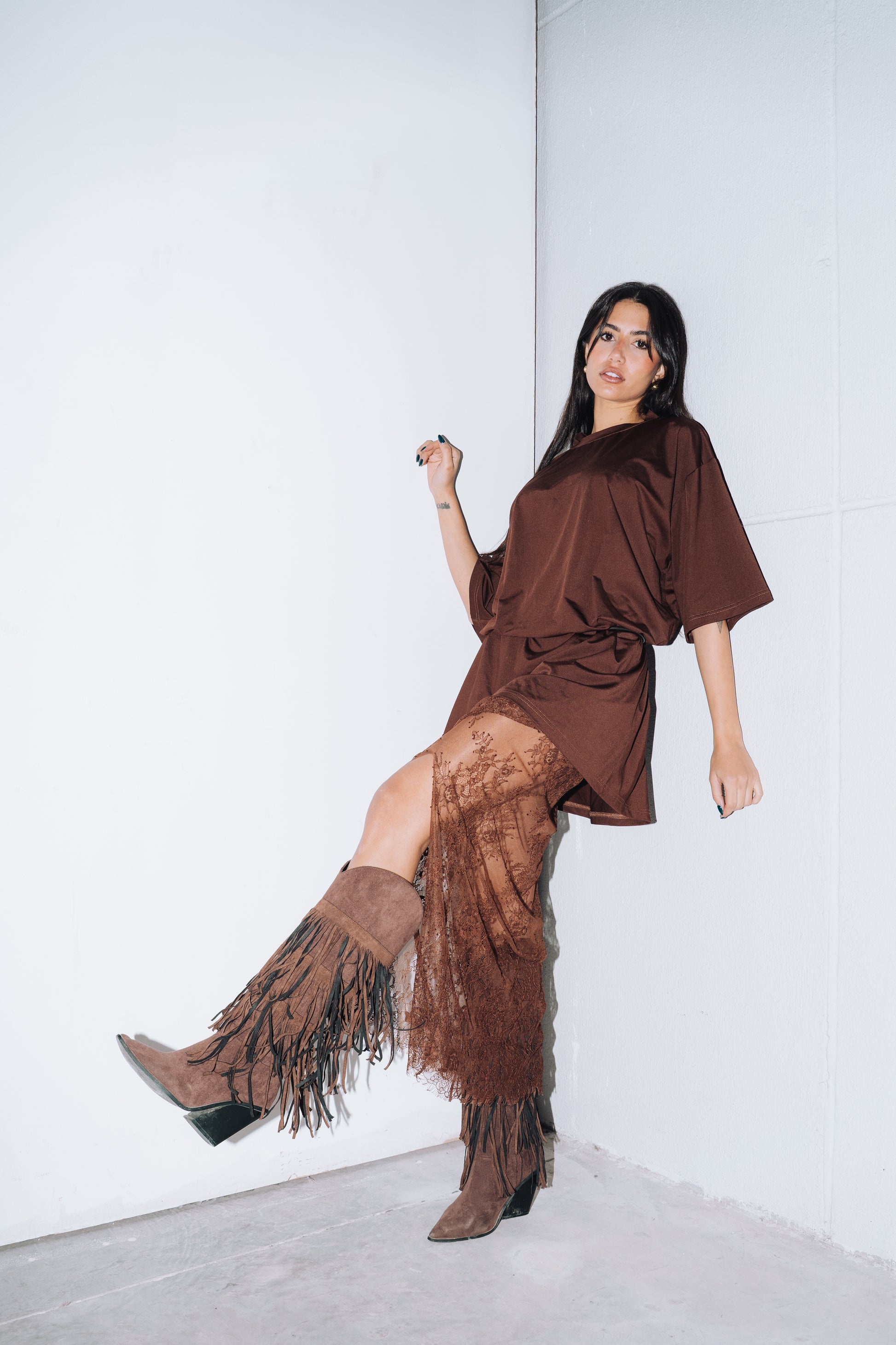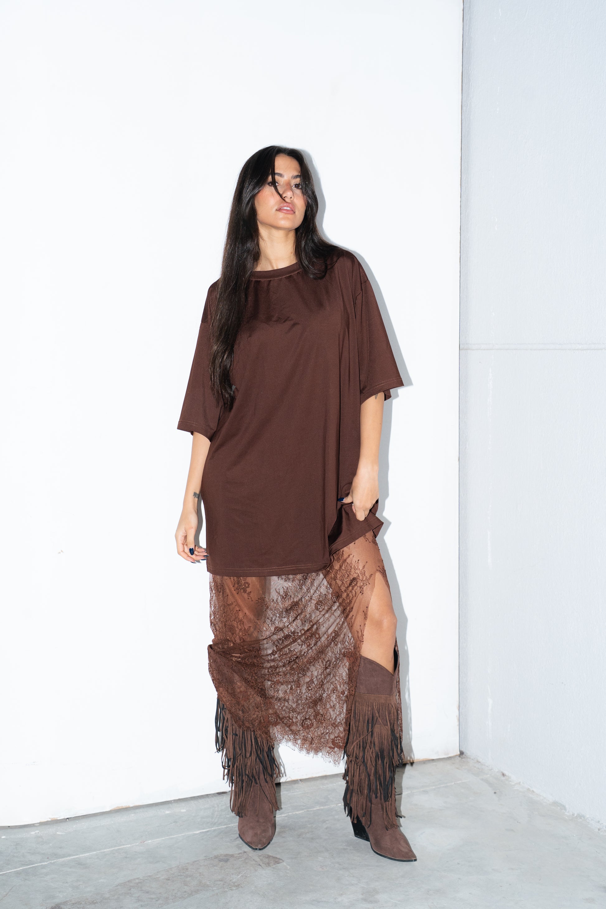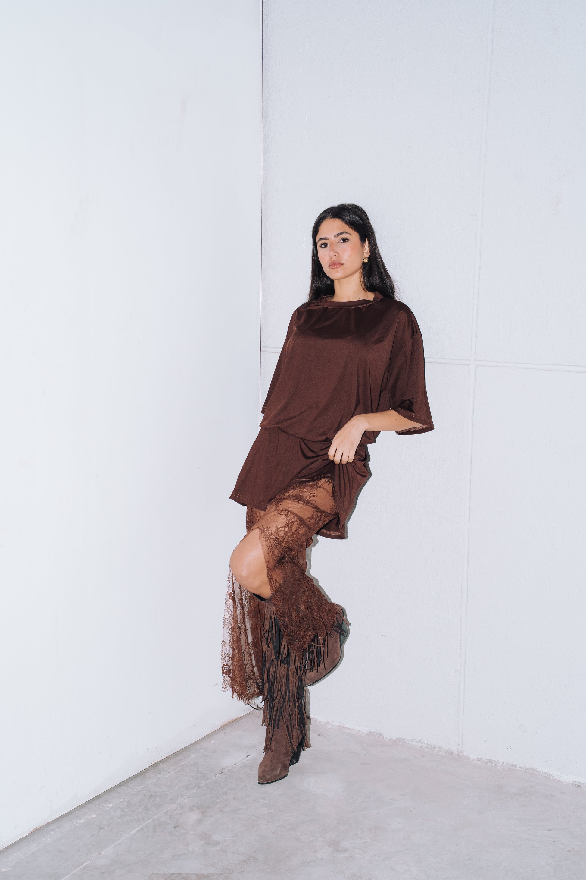 Get ready to sass up your wardrobe with our Urban Lace Set! This edgy duo includes a loose plain tee and a lace skirt for a punk urban style. Slay the streets with confidence and attitude in this trendy set.